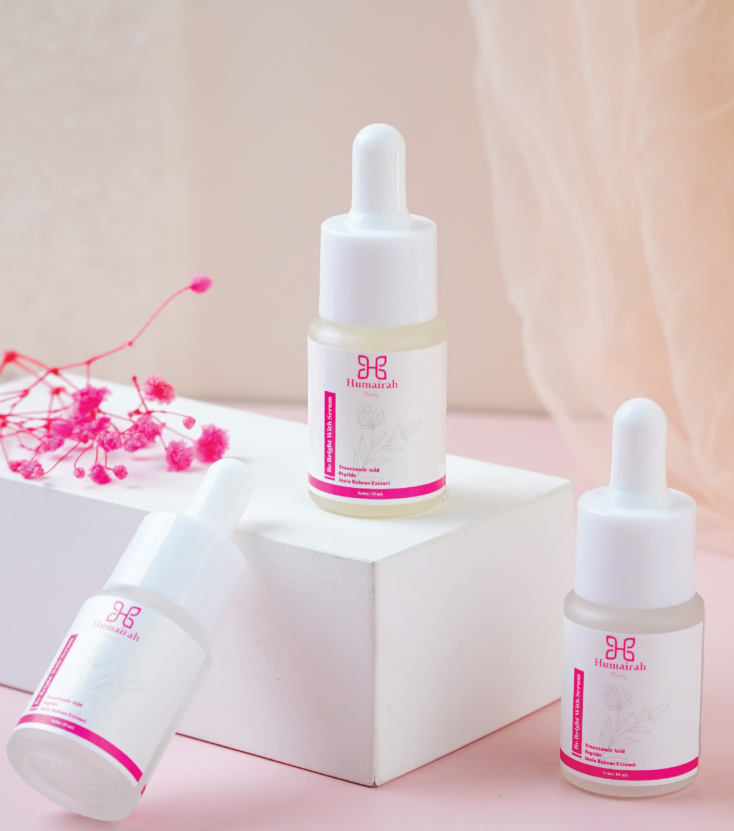 Serum dengan Kandungan Niacinamide, Tranexamic Acid yang dapat membantu mencerahkan kulit wajah serta membantu menyamarkan flek hitam akibat hiperpigmentasi. Be Bright with Serum juga memiliki kandungan lain seperti Peptide yang membantu mencegah pembentukan wrinkle (kerutan) dan meningkatkan produksi collagen.